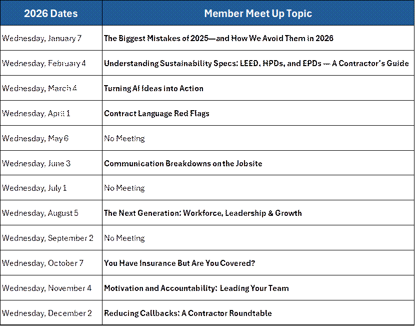 2026 marks year 6 for the Monthly Member Meet Up. In March of 2021, FCICA launched its monthly Member Meet Up - an online discussion forum held the first Wednesday of the month - a member-only benefit. These one hour Meet Ups provide an opportunity for industry professionals to engage, exchange ideas and keep in touch in an informal, conversational format via video calls. Industry related topic discussions range from installation techniques to business challenges.