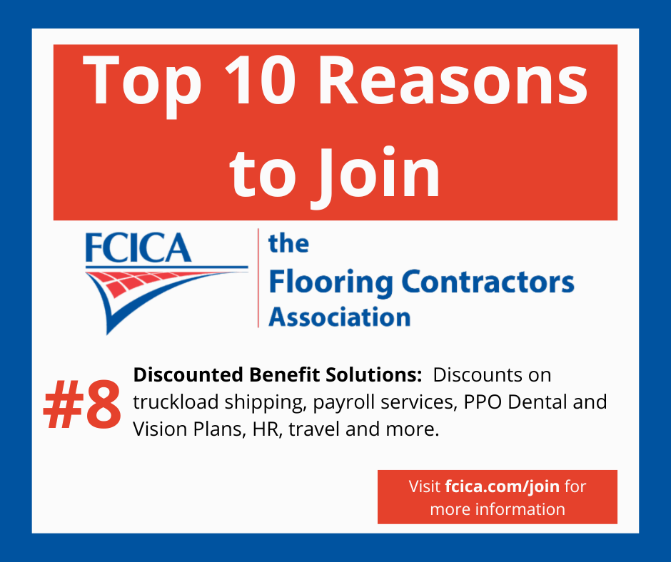 Membership in FCICA, the Flooring Contractors Association, has many benefits. Discounted Benefit Solutions is a Top 10 Reason.